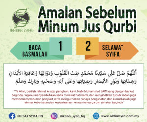 PERINGATAN : Jus Qurbi perlu disimpan di dalam peti ais atau suhu dingin setelah dibuka untuk mengelakkan Jus menjadi basi/masam.