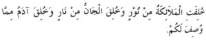 Malaikat dicipta daripada cahaya, Jin dicipta daripada api dan manusia dicipta daripada apa yang diceritakan kepadamu (tanah).